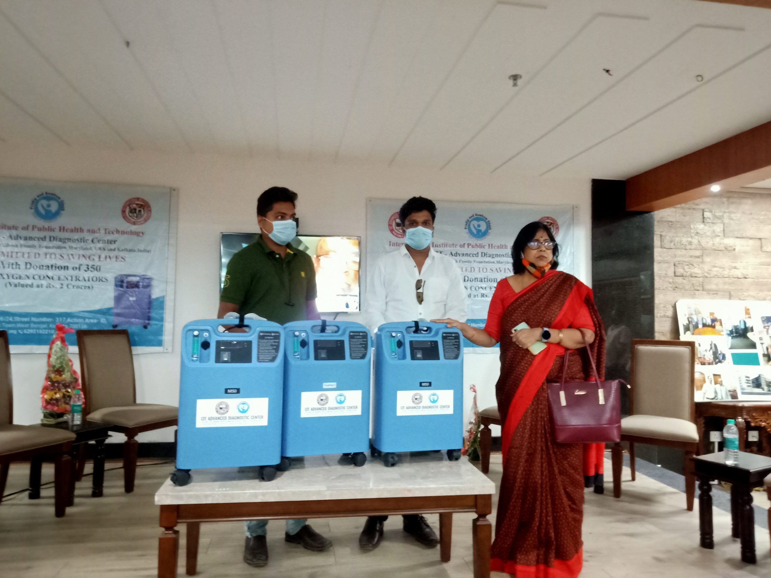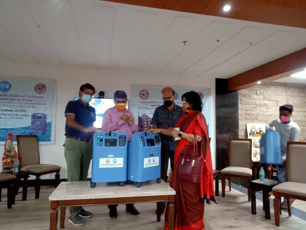 Dr. Pradip Ghosh on Tuesday handed over 50 oxygen concentrators to the safe homes maintained by Shri. Sujit Bose, Minister of State, Fire and Emergency Services, Shri Tapas Chatterjee, MLA, Newtown Rajarhat constituency, Smt. Aditi Munshi, MLA, Gopalpur Rajarhat constituency and also to 10 housing societies and few of the youth clubs from Howrah, Salt Lake and Newtown area in a simple event at the premises of International Institute of Innovation And Technology, where he attended on a virtual platform from Maryland, USA.